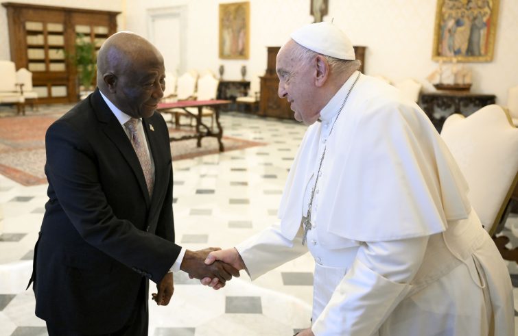 E’ durato circa 20 minuti il colloquio privato tra il Papa e il presidente della Liberia, Joseph Nyuma Boakai, il quale successivamente si è incontrato con il cardinale segretario di Stato, Pietro Parolin, accompagnato da mons. Paul Richard Gallagher, segretario per i Rapporti con gli Stati e le Organizzazioni Internazionali. “Nel corso dei cordiali colloqui in Segreteria di Stato – informa la Sala Stampa della Santa Sede – sono state rilevate le buone relazioni tra la Santa Sede e la Liberia, nonché la collaborazione con la Chiesa Cattolica nel campo educativo e sanitario, e ci si è soffermati su alcuni aspetti della situazione sociale ed economica del Paese. Nel prosieguo della conversazione, vi è stato anche uno scambio di opinioni sull’attualità internazionale, con particolare riferimento alla situazione regionale e ai fenomeni migratori”. Il Papa ha donato al presidente un’opera in bronzo raffigurante una colomba che porta un ramoscello d’olivo, con la scritta “Siate messaggeri di pace”, oltre al Messaggio per la Pace di quest’anno e ai volumi dei documenti papali.