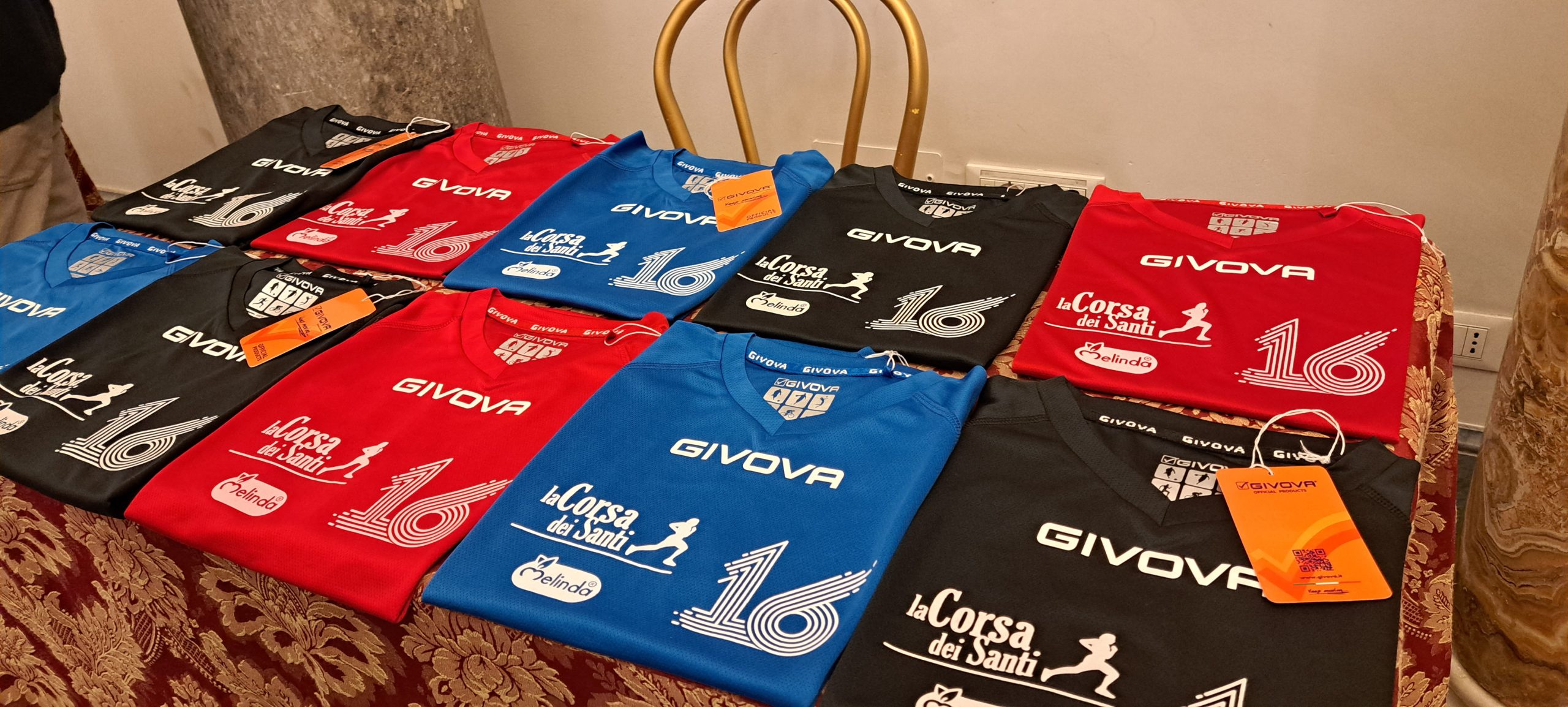 Le magliette della “Corsa dei Santi” (foto Biagioni SIR)