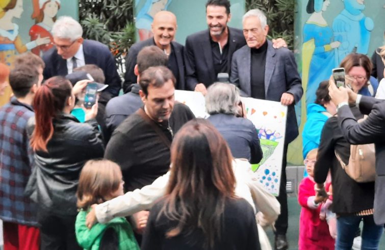 Ancora una serata di grandi emozioni per i piccoli pazienti dell’Ospedale pediatrico Bambino Gesù grazie ai beniamini della Nazionale azzurra di calcio. Alla vigilia del match Italia-Belgio, il presidente della Federazione italiana giuoco calcio, Gabriele Gravina, con il ct Luciano Spalletti, al capo delegazione Gigi Buffon e ai calciatori Riccardo Calafiori, Giacomo Raspadori e Gianluigi Donnarumma, sono arrivati nel tardo pomeriggio di oggi nella sede del Gianicolo. La delegazione Figc ha “restituito” la visita che lunedì scorso 7 bambini e ragazzi in cura nel reparto di Neuroriabilitazione dell’ospedale ha effettuato a Coverciano per vivere una giornata speciale insieme alla Nazionale azzurra, sedendo a tavola con i calciatori e assistendo a un allenamento. È la quarta volta che gli Azzurri fanno visita al Bambino Gesù negli ultimi 5 anni. Ad accoglierli il presidente dell’Ospedale della Santa Sede, Tiziano Onesti, il direttore generale Antonio Perno, il direttore sanitario Massimiliano Raponi, la responsabile comunicazione e raccolta fondi Alessandra Delli Poggi e il segretario generale della Fondazione Bambino Gesù, Niccolò Contucci. Al Castello dei giochi una rappresentanza dei bambini