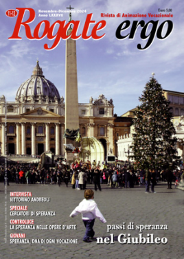 Nell’approssimarsi del Giubileo la rivista Rogate ergo, nel numero di novembre-dicembre, pubblica una monografia sulla speranza, ricordando il discorso che Giovanni Paolo II fece ai giovani durante il Grande Giubileo del 2000: “È Gesù che cercate quando sognate la felicità; è Lui che vi aspetta quando nulla vi soddisfa; è Lui la bellezza che tanto vi attrae, è Lui che vi legge nel cuore le decisioni più vere che altri vorrebbero soffocare”.