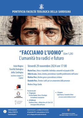 Si terrà venerdì 29 novembre, alle ore 17, il secondo appuntamento di incontri sul tema “‘Facciamo l’uomo’ (Gen 1,26): l’umanità tra radici e futuro”, previsto all’interno della programmazione annuale dei convegni che si svolgono alla Pontificia Facoltà Teologica della Sardegna, a Cagliari.