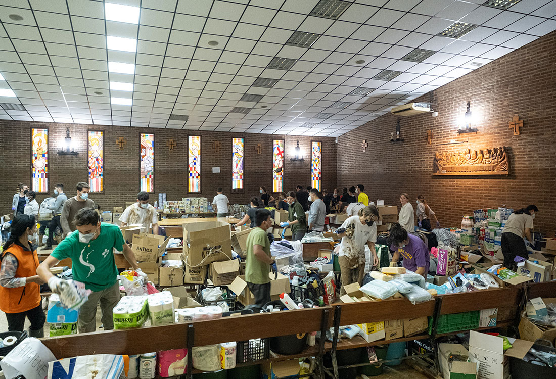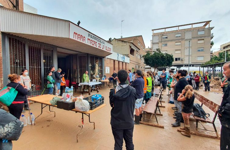 Particolarmente attive sul fronte degli aiuti, sono le parrocchie, soprattutto quelle che si trovano nelle zone più alluvionate. La prima a mobilitarsi è stata la Parrocchia del quartiere La Torre, che in coordinamento con il comune è stata abilitata e attrezzata per la distribuzione di cibo, vestiario e prodotti di prima necessità. Oltre a liberare le strutture della parrocchia dal fango, i volontari stanno aiutando a pulire le case private. Il parroco José Vicente Alberola spiega: “bisogna tenere conto che le case della zona bassa di Catarroja sono state devastate. Dalla parrocchia ci coordiniamo anche per poter alleviare i diversi bisogni e soprattutto curare gli anziani e portare farmaci ai malati. Ora le necessità più urgenti sono i bisogni materiali, in particolare stivali di gomma e materiali per la pulizia, e il sostegno alle persone in ciò di cui hanno bisogno”.