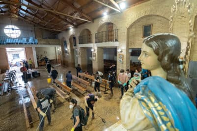 Il parroco di Aldaia, Francisco Furió dice: “È necessario aumentare la consapevolezza che avremo bisogno di aiuto quando nessuno si ricorderà di noi”. “Apprezziamo le manifestazioni di solidarietà da parte delle persone che ci forniscono cibo e vestiti, ora così necessari, ma dobbiamo essere consapevoli che il problema arriverà quando le persone che hanno perso tutto, dovranno acquistare il necessario per vivere, come un frigorifero per conservare gli alimenti, un elettrodomestico per cucinarli… ecco perché è necessaria anche la collaborazione economica attraverso Caritas, per andare avanti quando nessuno si ricorderà di noi”. Con tristezza e con la voce rotta dalla fatica, il parroco descrive la situazione vissuta questo fine settimana con preoccupazione e molta gratitudine ai volontari: “grazie a loro è stato possibile pulire e svuotare le case dal fango. Abbiamo cominciato dalle case e, quando è stato possibile, siamo entrati nei locali parrocchiali. Un’ondata di solidarietà è arrivata a Valencia da tutti i vescovi, il clero e i fedeli delle diocesi spagnole.