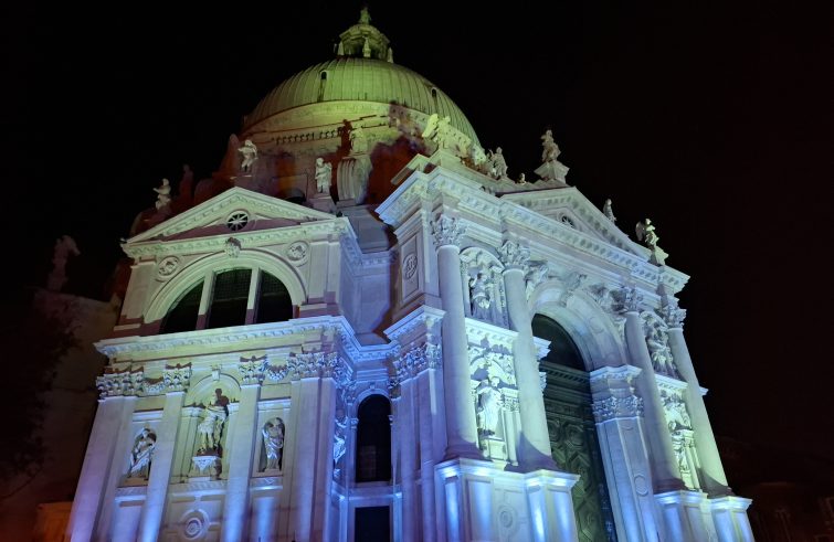 Ieri sera lo svelamento progressivo della facciata della basilica dedicata a Santa Maria della Salute per celebrarne la restituzione a Venezia e come segno di ringraziamento verso tutte le istituzioni e maestranze che hanno operato su questo prezioso bene ecclesiale e culturale insieme. Per questo, ieri sera alle 18 vi è stato lo spegnimento delle luci pubbliche e le successive riaccensioni con fari led, per focalizzare l’attenzione della comunità cittadina sulla basilica restaurata e sottolinearne la bellezza. “Abbiamo pensato – spiega don Gianmatteo Caputo, direttore Ufficio beni culturali del Patriarcato di Venezia – di presentare la facciata della chiesa con un effetto di svelamento realizzato attraverso l’utilizzo delle luci ordinarie di illuminazione pubblica con una integrazione di alcuni effetti colorati. Dalla rete pubblica spenta si è passati all’ effetto svelamento fatto con i fari a regia, al termine dei quali è stata riproposta l’illuminazione totale tradizionale”.