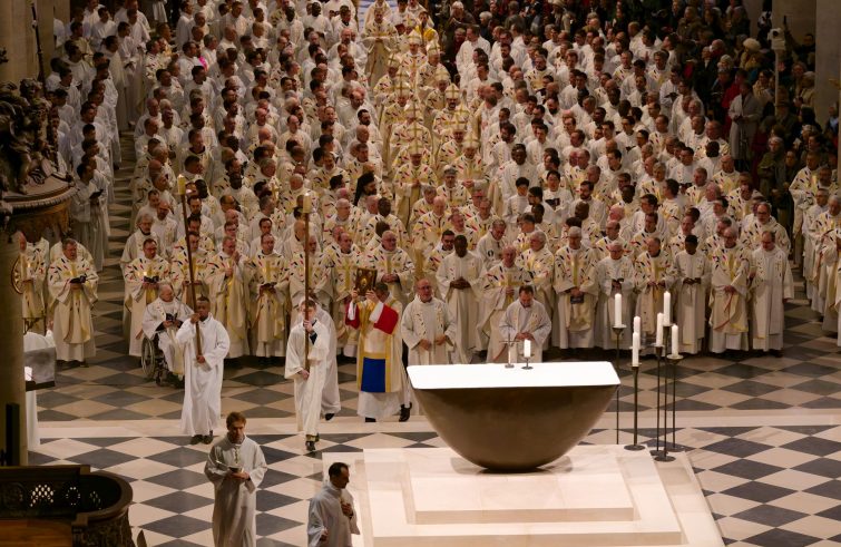 “Molti di voi sacerdoti domenica eravate impegnati nelle parrocchie e nelle cappelle della diocesi per la celebrazione della seconda domenica di Avvento, ed è proprio con voi che ho voluto iniziare il ciclo di queste messe celebrate nel corso di questa ottavario con le diverse parti costitutive della nostra Chiesa diocesana. Voi siete i primi collaboratori del Vescovo, e il Vescovo desidera essere con voi padre, fratello e amico, secondo le parole del Concilio Vaticano II”. Lo ha detto ieri mons. Laurent Ulrich, arcivescovo di Parigi, nell’omelia della messa concelebrata nella cattedrale di Notre-Dame con tutti i sacerdoti e vescovi della diocesi. Dopo il “bagno di folla” con l’arrivo delle autorità di tutto il mondo e la consacrazione dell’altare maggiore, cuore della cattedrale, da ieri è partita una intensa settimana di preghiere e messe aperte a tutto il “popolo” della Chiesa parigina e della cattedrale di Notre-Dame, dai donatori, ai vigili del fuoco, agli studenti delle scuole medie e superiori. Alla messa di ieri hanno partecipato anche diaconi e laici impegnati nelle missioni diocesane.