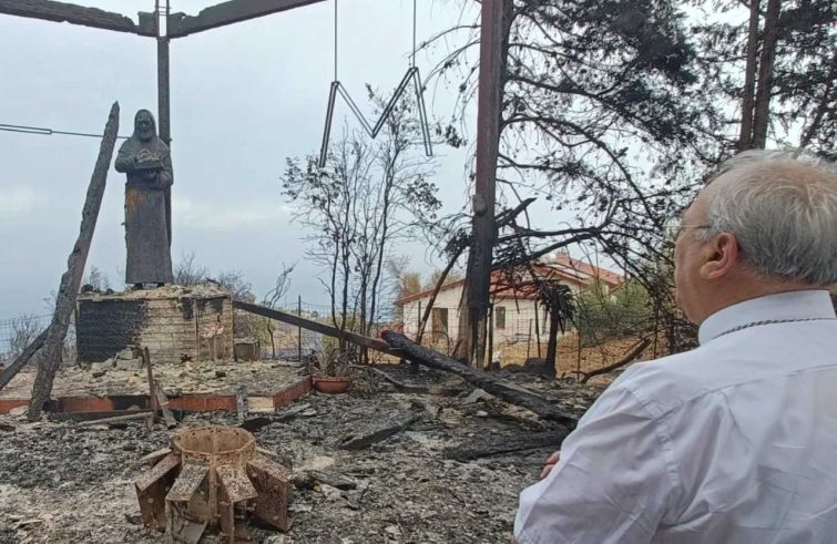 Il sito, che era aperto al pubblico per la preghiera, è stato quasi completamente distrutto dagli incendi dell’estate 2023; fiamme che hanno quasi miracolosamente risparmiato la statua del Santo di Pietrelcina.