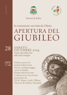 Il vescovo Carlo Villano aprirà solennemente l’Anno giubilare nella Chiesa di Ischia oggi, sabato 28 dicembre, alle ore 17, con la celebrazione eucaristica nella basilica Santa Maria di Loreto a Forio, e nella Chiesa di Pozzuoli domani, domenica 29 dicembre, alle ore 18, con la celebrazione eucaristica nella concattedrale San Paolo Apostolo a Monterusciello.
