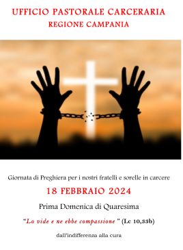 Domenica 18 febbraio, prima domenica di Quaresima, la Conferenza episcopale campana, come per gli scorsi anni, ha istituito una giornata di preghiera dedicata agli istituti penitenziari, a tutte le persone che soffrono una pena carceraria, alle famiglie e a quelli che, come personale carcerario e come volontari, svolgono il loro servizio presso le carceri della Regione Campania.