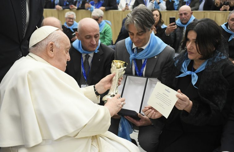 “Vi incoraggio ad essere artigiani di pace in un tempo in cui le guerre mietono vittime e i poveri non trovano ascolto. Le vostre mani, i vostri occhi, i vostri piedi siano segno di un’umanità creativa e generosa. E il vostro cuore sia sempre appassionato della bellezza”, l’invito del Papa, che ha concluso: “Grazie per il bene che realizzate. Vi affido alla protezione di San Giuseppe, che custodisca voi, le vostre famiglie e il vostro lavoro. Vi benedico di cuore. E vi chiedo per favore di pregare per me”.
