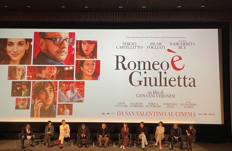 “Ho avuto diversi alter ego nella vita. Il primo è Francesco Nuti, cui è dedicato il film. Mi sento orfano senza di lui. Poi ho lavorato tanto con Leonardo Pieraccioni, insieme abbiamo scritto film che la gente vede e rivede come ‘Il ciclone’. Ma ora c’è Pilar, il mio terzo alter ego, con cui mi trovo veramente bene a scrivere e a parlare: lei mi insegna più degli altri, perché è un mondo diverso da me”. Così il regista Giovanni Veronesi, presentando la sua commedia sentimentale “Romeo è Giulietta”, scritta con Pilar Fogliati, anche protagonista insieme a Sergio Castellitto, Domenico Diele, Maurizio Lombardi e Geppy Cucciari. Una produzione Indiana, Capri Entertainment e Vision Distribution con Sky, in uscita mercoledì 14 febbraio in 460 copie. “Con Pilar – aggiunge Veronesi – sto facendo un percorso di racconto delle nuove generazioni, dei ventenni di oggi, che convivono con ansia da prestazione e paure del fallimento. Il personaggio che interpreta è nato proprio così, sotto la spinta della ricerca di identità, che trova indossando una maschera, nascondendosi”. L’autore ha poi rimarcato: “Mi piacciono le persone che sbagliano, sono attratto da chi ha torto. Il mondo dello spettacolo è pieno di gente cui non sono stati perdonati errori; mi piace perdonare chi sbaglia”. “La questione identitaria è centrale nel film – dice Pilar Fogliati – Vittoria ha già rubato una volta un’identità, e per questo paga un prezzo alto. Per essere di nuovo credibile, deve cambiare identità, fingersi uomo. L’opposto. E in questo scarto si afferma anche uno spiraglio di libertà. Alla fine, però, capisce che per essere davvero liberi le maschere vanno tolte”. Sergio Castellitto ha raccontato come ha cesellato il suo personaggio di regista geniale e collerico: “Mi sono divertito a togliermi qualche sassolino dalla scarpa. Ho raccontato anche i registi del passato, più o meno dotati di sciarpa” (risate tra i giornalisti). “Questo film – ha aggiunto – è commedia pura: prende un argomento serio, come l’identità, il chi siamo e le bugie che ci raccontiamo, e lo prende a scarpate. Confesso che il teatro resta il mio primo amore: se il cinema è stato la mia amante, il teatro è mia nonna”. La storia: Roma, il noto regista teatrale Federico Landi Porrini annuncia il ritiro alle scene con il suo ultimo spettacolo “Romeo e Giulietta”. Le idee sono poche e le aspettative alte, così il regista inizia a fare i provini per i ruoli principali: manda via quasi tutti i candidati con scatti d’ira. Vittoria, respinta malamente per il ruolo di Giulietta (anche per un errore commesso in passato), è determinata a fargliela pagare, così con l’aiuto della truccatrice Gloria si (ri)presenta per il ruolo di Romeo nelle vesti di Otto Novembre…