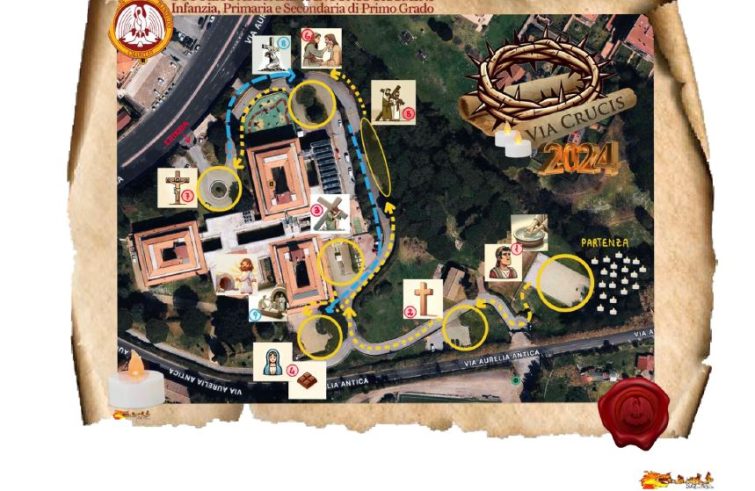 La scuola paritaria Antonio Rosmini di Roma promuove domani, venerdì 15 marzo, una Via Crucis che si snoderà su Via Aurelia Antica. Ad ogni stazione, ridotte di numero rispetto alle tradizionali 14, sarà associato un gesto. Alla prima stazione, “Gesù condannato”, si assocerà il lavaggio delle mani; alla seconda stazione, “Gesù caricato del peso della croce”, il raccogliere la croce; alla terza stazione, “Prima caduta di Gesù”, l’inginocchiarsi; alla quarta stazione, “Gesù incontra Maria”, il mangiare una goccia di cioccolata per “assaporare e sperimentare la dolcezza di Maria”; alla quinta stazione, “Gesù aiutato a portare la Croce. Il Cireneo”, il passaggio della croce; alla sesta stazione, “La Veronica asciuga il volto di Gesù”, lo scambio di carezze e abbracci al proprio vicino; alla settima stazione, “Gesù inchiodato sulla Croce”, il rumore del martello; all’ottava stazione, “Gesù muore”, il silenzio; alla nona stazione, “Gesù è deposto dalla croce”, l’incenso.