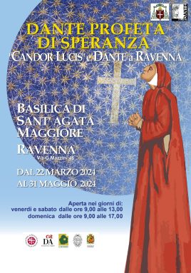 Dante, la sua opera e la sua città. Verrà inaugurata domani 22 marzo, in occasione del Dantedì, la mostra “Dante, profeta di Speranza. Candor Lucis Aeternae e Dante a Ravenna”, che rimarrà aperta nella basilica di Sant’Agata fino al 31 maggio. L’esposizione voluta dall’arcidiocesi di Ravenna-Cervia e a cura di “Dante in rete”, è un viaggio nell’opera di Dante e nella Ravenna del Sommo Poeta, con la chiave di lettura della lettera apostolica pubblicata il 25 marzo 2021, in occasione del 700esimo anniversario della morte dell’Alighieri.