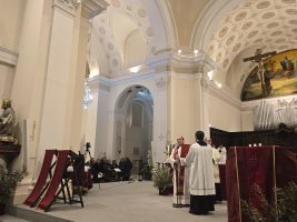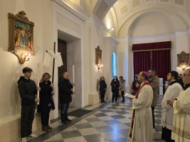 “Che senso ha la croce? Che senso ha la croce che portiamo sulle spalle o quella che guardiamo davanti a noi, quel legno nudo di un patibolo? Se non comprendiamo la bruttezza della croce, se non rabbrividiamo di fronte a quello strumento di morte, come potremo comprendere il sacrificio di Cristo o dei tanti Cristi che prendono quella croce e ce la mostrano? Di fronte alla croce, le domande sono impegnative e le risposte sono difficili da accogliere e da vivere”. Sono queste le parole di mons. Serafino Parisi, vescovo di Lamezia Terme, alla Via Crucis in cattedrale di ieri sera, animata da diversi gruppi diocesani. “La croce ci parla del dramma della storia dell’uomo: la croce della malattia, della mancanza di pace, delle guerre grandi e piccole. Quella croce che non ci fa dormire, quella croce che ha il volto di un bambino sporco di sangue che trema”. Il vescovo di Lamezia Terme ha sottolineato come non ci sia mai stato e non ci sarà mai un momento in cui qualcuno abbia potuto dire che la croce è bella o che piace, anche perché è il simbolo di tutto quello che nessuno vorrebbe mai provare su di sé. “Per noi cristiani la croce ha un senso perché la croce ha accolto il Crocifisso, che ha portato con sé tutti i drammi dell’umanità. La croce e il Crocifisso non hanno ‘né apparenza né bellezza’, ma hanno la capacità di generare dentro di noi una domanda sul senso del dolore e sul senso della vita. La croce piantata dentro il baratro dell’umanità, proprio perché è sormontata dal Crocifisso, diventa albero della vita. Prendere consapevolezza della pesantezza e della bruttezza della Croce ci porta a dire che Gesù Cristo ha dato un senso nuovo a quello strumento di morte trasformandolo in occasione di vita”, ha proseguito mons. Parisi, invitando tutti ad avere speranza attraverso la croce che è la verità dell’uomo. “Tutto accade per l’amore di Dio che è quel cerchio di carità all’interno del quale tuto è compreso, anche le nostre croci, che restano pesanti e brutte, ma possono essere occasione di redenzione, salvezza e vita”, ha concluso il presule.