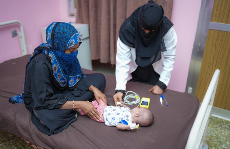 The malnourished child, Sanad with his mother while Dr. Awsan - (foto: Unicef)