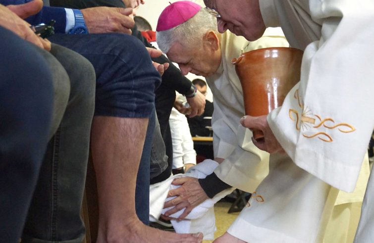 La celebrazione della messa in Coena domini, del Giovedì santo, è stata presieduta dal vescovo Francesco Antonio Soddu all’interno della Casa circondariale di Terni, per il secondo anno consecutivo. Nel corso della celebrazione, molto partecipata e vissuta con particolare intensità e raccoglimento dai detenuti, il vescovo ha ripetuto il gesto della lavanda dei piedi a dieci detenuti. “Il gesto della lavanda dei piedi non è un gesto di cortesia – ha detto monsignor Soddu –, ma è un gesto profondo di donazione, un gesto di amore. E di gesti amore tutti abbiamo necessità. Se manca l’amore non c’è più niente nella vita, ma solo odio, prevaricazione, conflitto. Seguendo gli insegnamenti del Vangelo apparirà il senso profondo della pace e della riconciliazione di cui tutti abbiamo necessità, abbandonando gli egoismi, l’egocentrismo e ciò che appesantisce la vita, per essere capaci di farsi prossimo con i doni che Gesù ci dà ed aprirsi alla speranza, perché quello che è morto dentro di noi, con l’aiuto di Gesù, può rinascere a vita nuova”. Al vescovo è stata donata una croce pettorale realizzata dai detenuti di Casal del Marmo e Rebibbia nell’ambito del progetto Croce della Speranza promosso dall’Ispettorato generale dei cappellani, per tutti i vescovi impegnati nella pastorale carceraria.