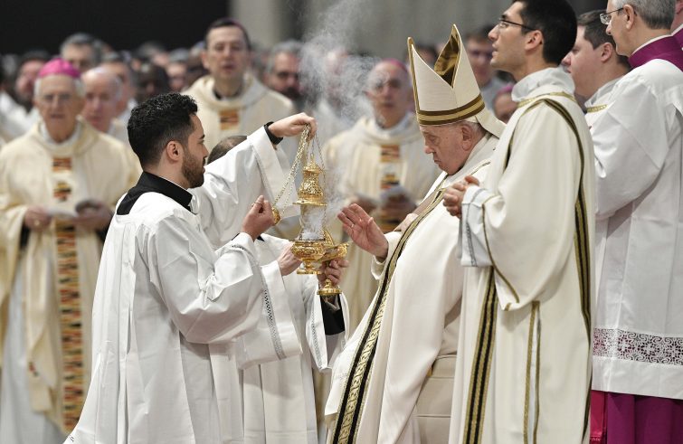 “Non guardare la vita e la chiamata in una prospettiva di efficienza e di immediatezza, legata solo all’oggi e alle sue urgenze e aspettative, ma nell’insieme del passato e del futuro”. E’ il consiglio del Papa, nella parte finale dell’omelia della Messa crismale del Giovedì Santo, presieduta nella basilica di San Pietro. “Del passato, ricordando la fedeltà di Dio, facendo memoria del suo perdono, ancorandoci al suo amore; e del futuro, pensando alla meta eterna a cui siamo chiamati, al fine ultimo della nostra esistenza”, ha spiegato Francesco, secondo il quale “allargare gli orizzonti aiuta a dilatare il cuore, stimola a rientrare in sé stessi con il Signore e a vivere la compunzione”. “Riscopriamo la necessità di dedicarci a una preghiera che non sia dovuta e funzionale, ma gratuita, calma e prolungata”, l’altro consiglio del Papa: “Torniamo all’adorazione e alla preghiera del cuore. Ripetiamo: Gesù, Figlio di Dio, abbi pietà di me, peccatore. Sentiamo la grandezza di Dio nella nostra bassezza di peccatori, per guardarci dentro e lasciarci attraversare dal suo sguardo. Riscopriremo la sapienza della Santa Madre Chiesa, che ci introduce alla preghiera sempre con l’invocazione del povero che grida: ‘O Dio, vieni a salvarmi’”. “Grazie, cari sacerdoti, per il vostro cuore aperto e docile; grazie per le vostre fatiche e i vostri pianti; grazie perché portate la meraviglia della misericordia Dio ai fratelli e alle sorelle del nostro tempo”, l’omaggio finale: “perdonate sempre, siate misericordiosi”.