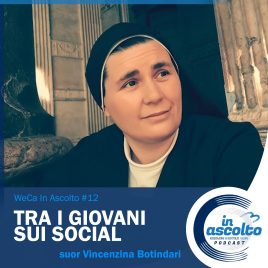 L’episodio del podcast, curato e condotto dal giornalista e social media strategist di WeCa Andrea Canton, ripercorre la scelta pastorale di suor Vincenzina Botindari, la quale ha scelto di svolgere il suo servizio nella pastorale giovanile ascoltando le voci dei più giovani sui social fin dal primo boom di Facebook nel 2008. Un impegno che parte da una “curiosità” ma che viene portato avanti solo coltivando l’interesse verso le persone.