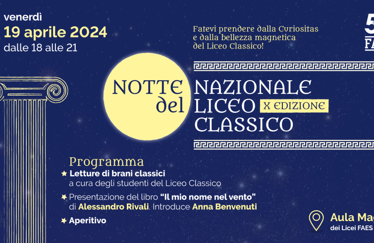Ritorna anche quest’anno la “Notte nazionale del Liceo classico”, un appuntamento giunto ormai alla sua decima edizione e che verrà celebrato venerdì 19 aprile, dalle 18 alle 24, in contemporanea in quasi 350 licei classici in Italia.
