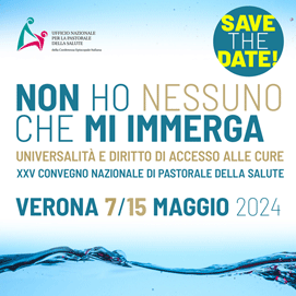 Sono aperte le iscrizioni al XXV Convegno nazionale di pastorale della salute, in programma dal 7 al 15 maggio a Verona, sul tema “Non ho nessuno che mi immerga. Universalità e diritto di accesso alle cure”.