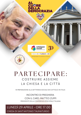 L’incontro con la comunità diocesana e cittadina di Trieste è pensato come un momento di preghiera e riflessione e si colloca nel contesto del percorso di preparazione alla Settimana sociale dei cattolici in Italia, che si terrà a Trieste dal 3 al 7 luglio e avrà come tema “Al cuore della democrazia: partecipare tra storia e futuro”.