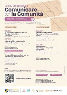 Il laboratorio prevede nella mattina di martedì 21 maggio gli interventi di Pal Toth e Michele Zanzucchi, docenti dell’Istituto universitario Sophia, moderati da Sarah Siciliano di UniSalento, mentre nel pomeriggio l’intervento di Vincenzo Grienti, giornalista e digital editor di Tv2000 e RadioInBlu2000, moderato da Vincenzo Paticchio, direttore di Portalecce. Mercoledì 22 maggio, nel pomeriggio, gli interventi di Francesco Romito, direttore della Scuola di reportage narrativo “Alessandro Leogrande”, e Giuliano Battiston, giornalista e ricercatore freelance, direttore dell’Associazione di giornalisti indipendenti “Lettera22”, moderati da Chiara Maggiore. Tutti gli interventi saranno intervallati da momenti di dialogo e proposte laboratoriali.
