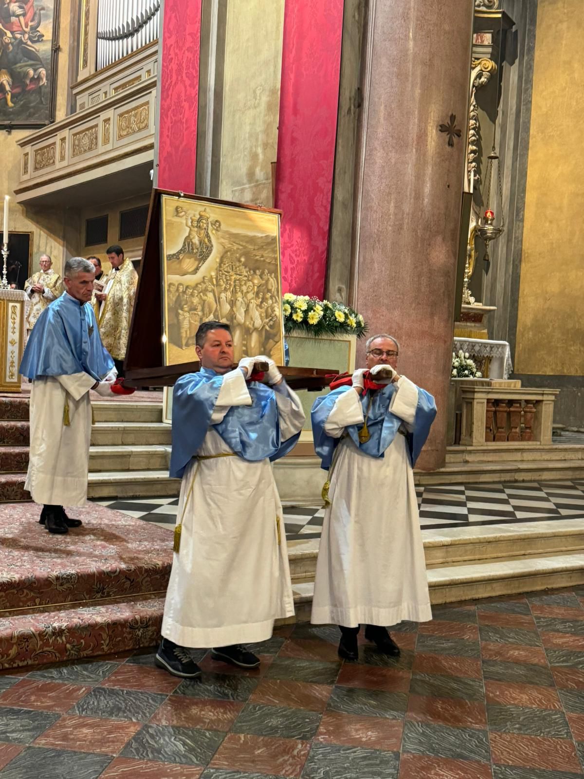 A seguire il Cammino per le vie della città con i grandiosi crocifissi della tradizione ligure e l’icona delle Confraternite che partita da Pompei il 3 giugno 2023 attraverserà le diocesi della Regione ecclesiastica lombarda sino al 19 maggio.