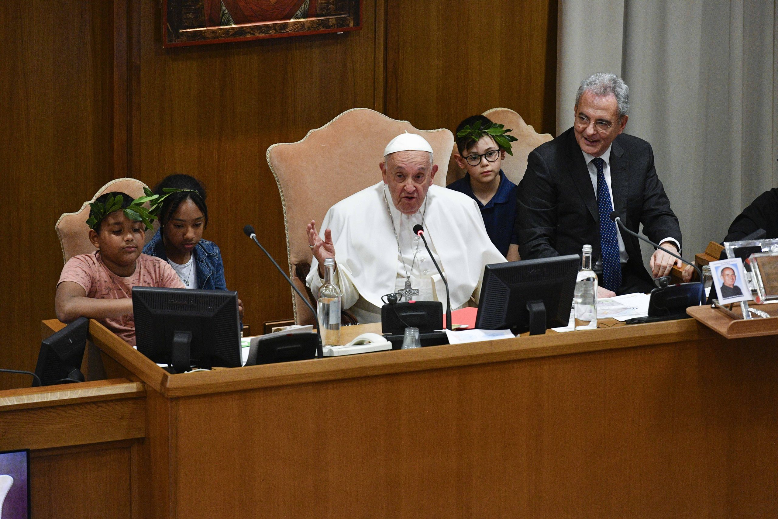 Papa Francesco ha insistito: “Non ho capito bene…”. E i bambini di rimando: “Come un bambino nelle braccia della mamma”.