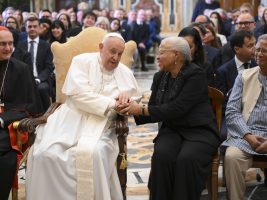 “Abbiamo imparato a volare come gli uccelli, a nuotare come i pesci, ma non abbiamo ancora imparato la semplice arte di vivere insieme come fratelli”. Ricevendo in udienza i partecipanti al Meeting mondiale sulla fraternità umana organizzato dalla Fondazione Fratelli tutti, il Papa ha citato il discorso pronunciato da Martin Luther King in occasione del conferimento del Premio Nobel per la pace, l’11 dicembre 1964. “Compassione”: è questa, ha ribadito Francesco citando l’episodio del Buon Samaritano, la parola-chiave per “tornare a far crescere l’arte di una convivenza che sia davvero umana”. “Nel pomeriggio voi vi incontrerete in dodici punti della Città del Vaticano e di Roma, per esprimere il vostro intento di generare un movimento di fraternità in uscita”, ha ricordato il Papa a proposito dei 12 Tavoli di lavoro che “presenteranno alla società civile alcune proposte, centrate sulla dignità della persona umana, per costruire politiche buone, basate sul principio della fraternità”. “Ho apprezzato questa scelta e vi incoraggio ad andare avanti nel vostro lavoro di semina silenziosa”, l’omaggio del Santo Padre: “Da esso può nascere una Carta dell’umano, che includa, insieme ai diritti, anche i comportamenti e le ragioni pratiche di ciò che ci rende più umani nella vita”. “Far crescere questa spiritualità della fraternità e a promuovere, con la vostra azione diplomatica, il ruolo degli organismi multilaterali”, la consegna ai Premi Nobel presenti.