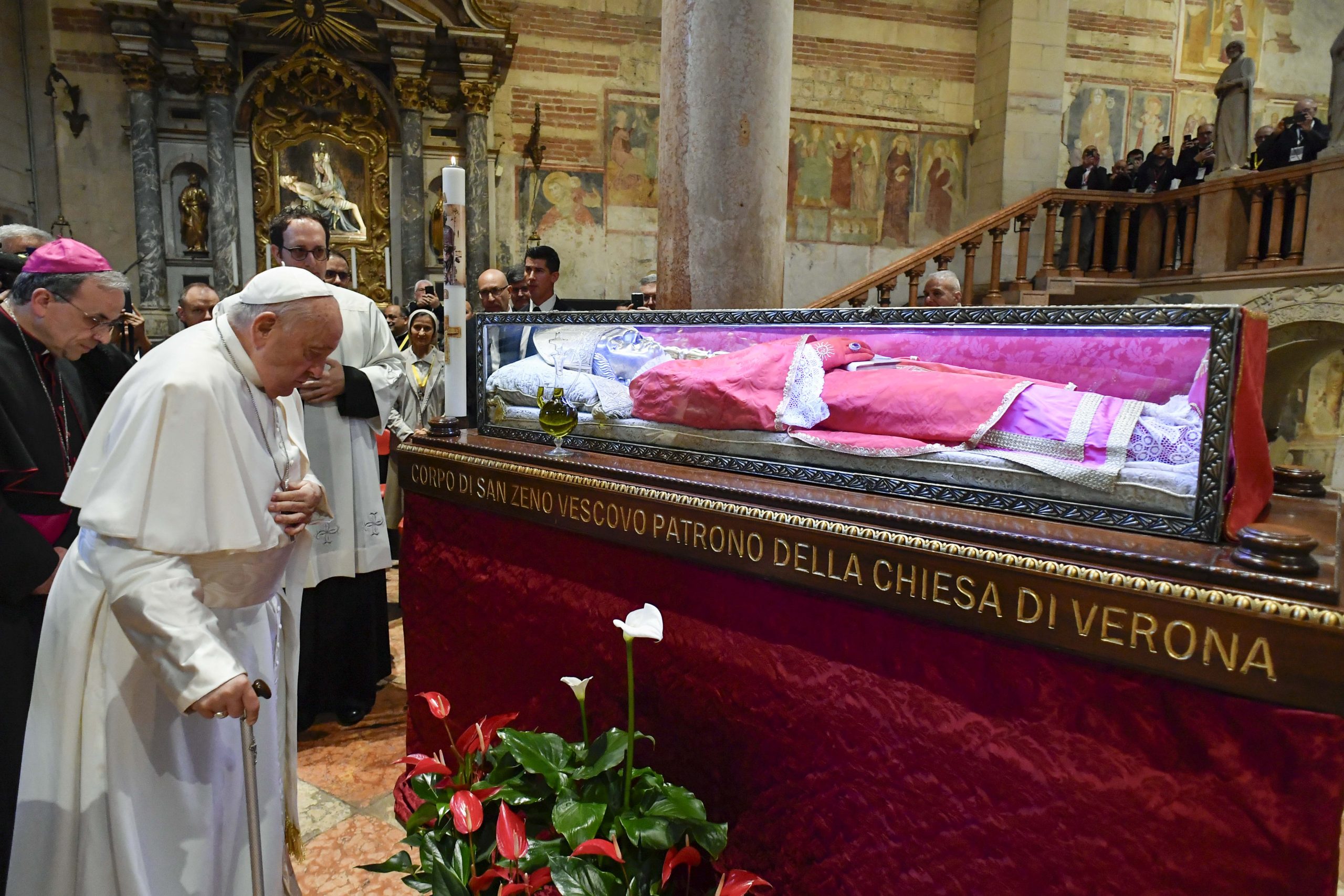 “Io ho voluto incominciare salutando queste donne che sono monache di clausura. Nella clausura non si perde la gioia. Sono brave, non fanno mai chiacchericcio”. Con queste parole Papa Francesco ha aperto la sua visita a Verona, prima dell’incontro con i sacerdoti e i consacrati, nella basilica di San Zeno. Poco prima, il Pontefice aveva salutato padre Ibrahim Faltas e benedetto una statua del Cristo che il frate francescano porterà in Terra Santa.