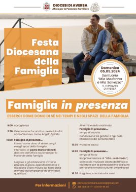 Domenica 5 maggio si rinnova ad Aversa l’appuntamento annuale della Festa diocesana della famiglia. Organizzata dall’Ufficio per la pastorale della famiglia e vita della diocesi di Aversa, la giornata si svolgerà presso il santuario “Mia Madonna e Mia Salvezza” di S. Cipriano d’Aversa-Casapesenna e ruoterà intorno al tema “Famiglia in presenza… esserci come dono di sé nei tempi e negli spazi della famiglia”.