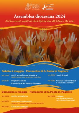 “Chi ha orecchi, ascolti ciò che lo Spirito dice alle Chiese”: questo è il titolo e il richiamo dell’Assemblea sinodale diocesana di Ascoli Piceno del 4 e del 5 maggio.