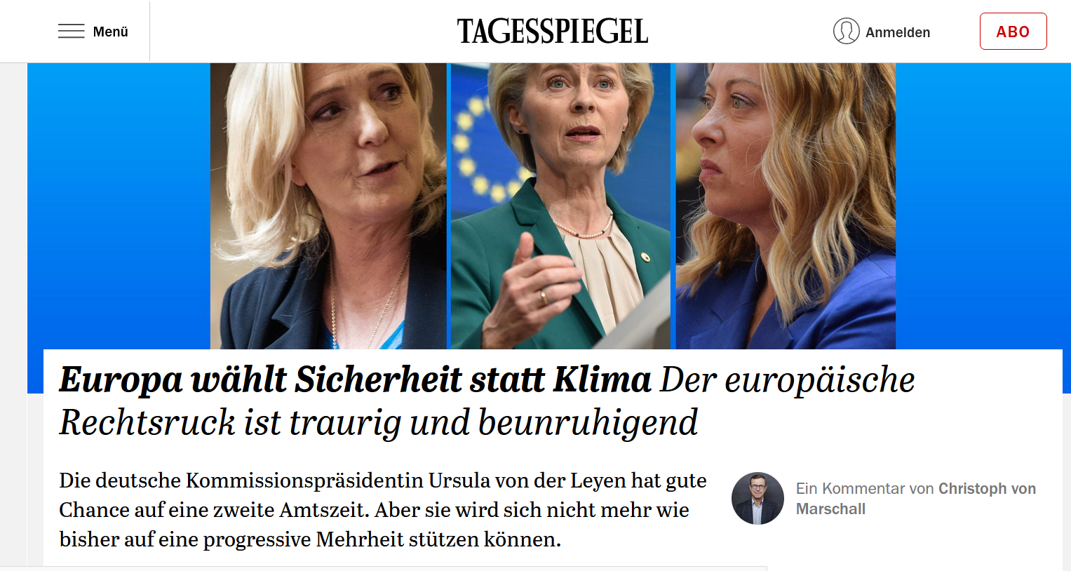 Il giorno dopo il voto, il clima politico tedesco è sospeso: i due principali partiti di governo Spd (13,9%) e Verdi (11,9%) sono crollati (il primo di due punti percentuali, di 8,6% il secondo), quasi fermo l’Fdp (liberali), al 5,2%. Le aperture dei giornali guardano fuori dal Paese, come quella del quotidiano berlinese Tagesspiegel che sotto un montaggio fotografico con Le Pen, Von der Leyen e Meloni titola “L’Europa sceglie la sicurezza al posto del clima. Lo scivolamento europeo verso destra è triste e preoccupante”. Anche perché, con il successo delle destre in Europa, si legge in un editoriale, anche la Commissione europea dovrà inevitabilmente vivere uno spostamento a destra”. A sorprendere è – sul fronte nazionale – l’affluenza alle urne dei tedeschi, il 64,8%, la più alta dalla riunificazione. Il sito del settimanale Der Spiegel apre con una Ursula von der Leyen con le braccia alzate in segno di vittoria e titola “Lo fa con la sinistra, nevvero?”. Il commento sul piano nazionale invece è secco: “Il risultato delle elezioni europee dimostra che i tedeschi hanno chiuso con questo cancellierato”; le opzioni in ballo sarebbero un passaggio del testimone al ministro della difesa Spd Boris Pistorius, o meglio ancora all’acclamato leader Cdu Friedrich Merz. Ma per ora non si ha notizia di decisioni. Il liberale Frankfurter Allgemeine Zeitung invece dà voce al leader Csu Markus Söder che ha chiesto nuove elezioni, come in Francia, dopo la sconfitta dei partiti di governo. Sul piano europeo, dello “scivolamento a destra”, anche sul Faz nel titolo, si dice che “potrebbe avere conseguenze sulla politica migratoria. E costituire l’inizio di un programma europeo di difesa missilistica”. L’altro dato-notizia invece riguarda la Germania, dove “i Verdi sono stati polverizzati, perché hanno perso coloro che credevano al sicuro: i giovani elettori”, molti dei quali avrebbero votato AfD, salito all’est al 30%. Sul sito di Suddeutsche Zeitung la foto centrale è lo smantellamento di un pannello elettorale con il volto di Holaf Scholz: “L’Spd ha vissuto raramente una serata elettorale del genere ed è stato addirittura superato dall’AfD, mentre Scholz si fa ancora volentieri i selfie”. E il commento generale sui risultati: “la Germania dopo il voto europeo è divisa. Nei vecchi länder ha vinto l’Unione quasi dappertutto, nei nuovi l’AfD. L’Ue in generale si sposta a destra, e la Germania si sposta con lei”.