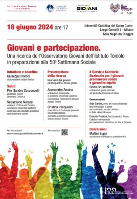 L’Istituto Giuseppe Toniolo e l’Università Cattolica del Sacro Cuore invitano alla presentazione della nuova indagine dell’Osservatorio Giovani sul tema giovani, democrazia, partecipazione politica e visione dell’Europa, in programma per domani, martedì 18 giugno, alle 17, a Milano, nella Sala Negri da Oleggio (largo Gemelli 1). Interverrà il card. Matteo Zuppi, presidente della Cei. La ricerca – spiegano dal Toniolo – è stata condotta intervistando 2.000 giovani italiani fra i 18 e i 34 anni e 1.000 per ciascuno degli altri quattro Paesi coinvolti (Germania, Francia, Polonia, Spagna). “Così l’Istituto Toniolo in collaborazione con l’Università Cattolica del Sacro Cuore offre il proprio contributo alla 50ª Settimana sociale dei cattolici in Italia che si terrà dal 3 al 7 luglio a Trieste”.