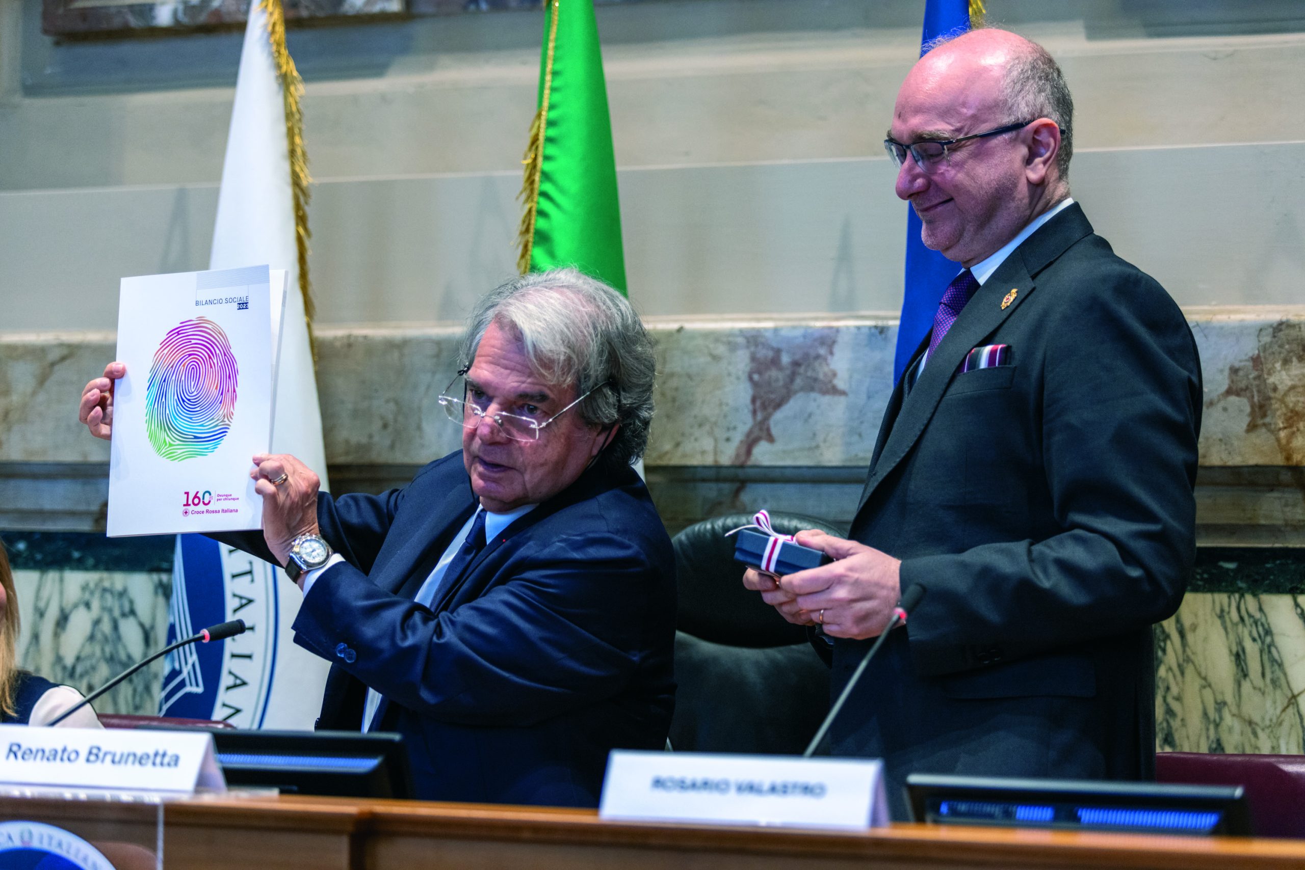Durante l’incontro, Valastro ha consegnato a Brunetta una copia del Bilancio sociale della Cri, che verrà presentato a Milano il prossimo 15 giugno, e la medaglia realizzata per celebrare il 160° anniversario dalla nascita dell’Associazione.