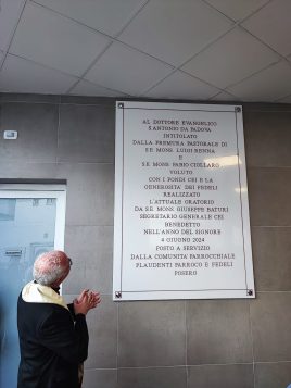 Il presule ha celebrato la messa nella omonima parrocchia e poi si è spostato nei nuovi locali parrocchiali che sono stati realizzati grazie a un finanziamento dei fondi dell’8xmille alla Chiesa cattolica. Dopo la benedizione di rito e lo scoprimento di una lapide ricordo è stato il parroco, mons. Carmine Ladogana, a presentare l’ospite, a ringraziarlo per la sua presenza e a sottolineare che senza il finanziamento della Cei l’opera non sarebbe stata realizzata. Da qui l’invito a “compiere un gesto d’amore, attraverso la propria firma a favore della Chiesa cattolica, perché quella firma oltre che a farti sentire bene consente di fare tanti altri gesti di amore”.
