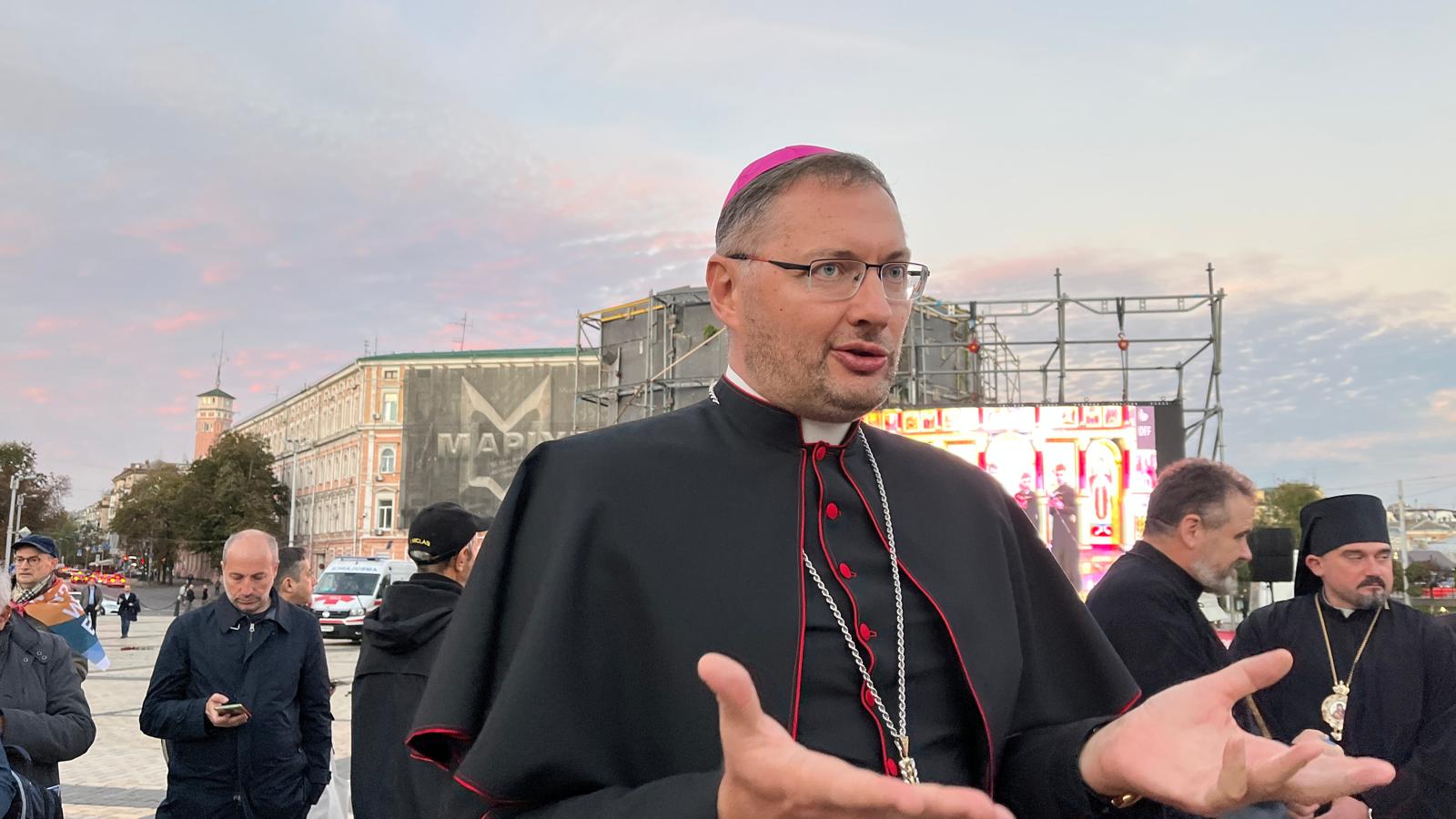 “Come la piccola Maria – afferma mons. Kulbokas in un comunicato-, si vuol gridare insieme in piazza che ‘i ricchi torneranno a mani vuote” e che “i troni dei potenti saranno rovesciati’, l’orecchio di Dio sarà teso sull’orecchio degli oppressi e gli oppressori anche se apparentemente più forti sul campo militare non potranno mai vincere contro la giustizia e la verità”.