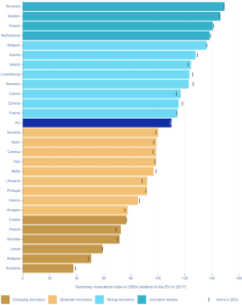 “I risultati in materia di innovazione dell’Unione europea continuano a migliorare a un ritmo costante, raggiungendo un aumento del 10% dal 2017 e una crescita del 0,5% tra il 2023 e il 2024”. Secondo l’edizione 2024 del Quadro europeo di valutazione dell’innovazione (Eis) pubblicata oggi, la maggior parte degli Stati membri dell’Unione ha migliorato i propri risultati in materia di innovazione, “ma l’aumento varia notevolmente da uno all’altro”. Tra il 2023 e il 2024 i risultati nazionali in materia di innovazione sono aumentati per 15 Stati membri, specifica lo studio Ue, mentre sono diminuiti per un altro gruppo di 11. La Croazia è rimasta stabile. Rispetto all’ultima edizione: la Danimarca rimane il Paese più innovativo seguito dalla Svezia.
