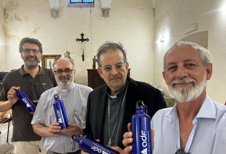 Questa mattina presso la mensa San Francesco a Siena sono state consegnate 150 borracce alla Caritas diocesana dalla Adf (Acquedotto del Fiora), che verranno consegnate a coloro che usufruiscono della mensa perché le possano utilizzare durante la giornata, in modo particolare in questo periodo estivo caratterizzato da alte temperature. Erano presenti il card. Augusto Paolo Lojudice, arcivescovo di Siena-Colle di Val d’Elsa-Montalcino, Roberto Renai, presidente di Adf, Giuseppe Gugliotti, presidente della Società della Salute Senese, don Vittorio Giglio, direttore della Caritas diocesana, e alcuni volontari della mensa estiva.