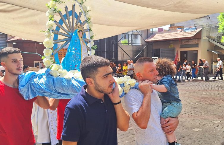 Sette giorni di preghiera per celebrare degnamente la solennità di Maria Assunta in cielo, per rinnovare, come ogni anno, la consacrazione della parrocchia e di tutta la Striscia di Gaza alla Sacra Famiglia e per chiedere il dono della pace. Così la comunità cristiana di Gaza, sfollata a causa della guerra nella parrocchia latina della Sacra Famiglia, si è preparata per la festa di Maria Assunta in Cielo del 15 agosto. A raccontare al Sir la giornata di ieri è lo stesso parroco latino, il missionario argentino padre Gabriel Romanelli: “Abbiamo elevato la nostra preghiera per la pace dal luogo dei combattimenti e in concomitanza con i colloqui a Doha (Qatar) che speriamo portino ad un accordo per una tregua qui nella Striscia di Gaza”. I negoziati per un cessate il fuoco che vanno avanti da mesi senza esito hanno spinto il patriarca latino di Gerusalemme, card. Pierbattista Pizzaballa, a chiedere alla comunità cristiana di tutta la Terra Santa di pregare per la pace proprio nel giorno della solennità dell’Assunzione di Maria Vergine in cielo. Questi potrebbero essere, è l’auspicio del cardinale, giorni importanti per riuscire a dare una svolta al conflitto. “Abbiamo iniziato la giornata al mattino presto con un tempo di adorazione, la recita del Rosario e delle lodi cui ha fatto seguito la messa solenne che ha visto anche la lettura della preghiera per la pace del patriarca latino Pizzaballa. Subito dopo – aggiunge padre Romanelli – all’interno del piazzale della parrocchia abbiamo portato in processione la statua della Vergine di Luján, molto venerata dai fedeli gazawi che da essa si sentono accompagnati e protetti. Una statua pellegrina che da anni viene accolta in casa dai cristiani della Striscia. Abbiamo pregato e chiesto il miracolo della pace perché solo un miracolo potrà mettere fine a questa guerra senza che ne abbia inizio un’altra. La giornata è stata conclusa con un momento di condivisione di tutta la comunità”.
