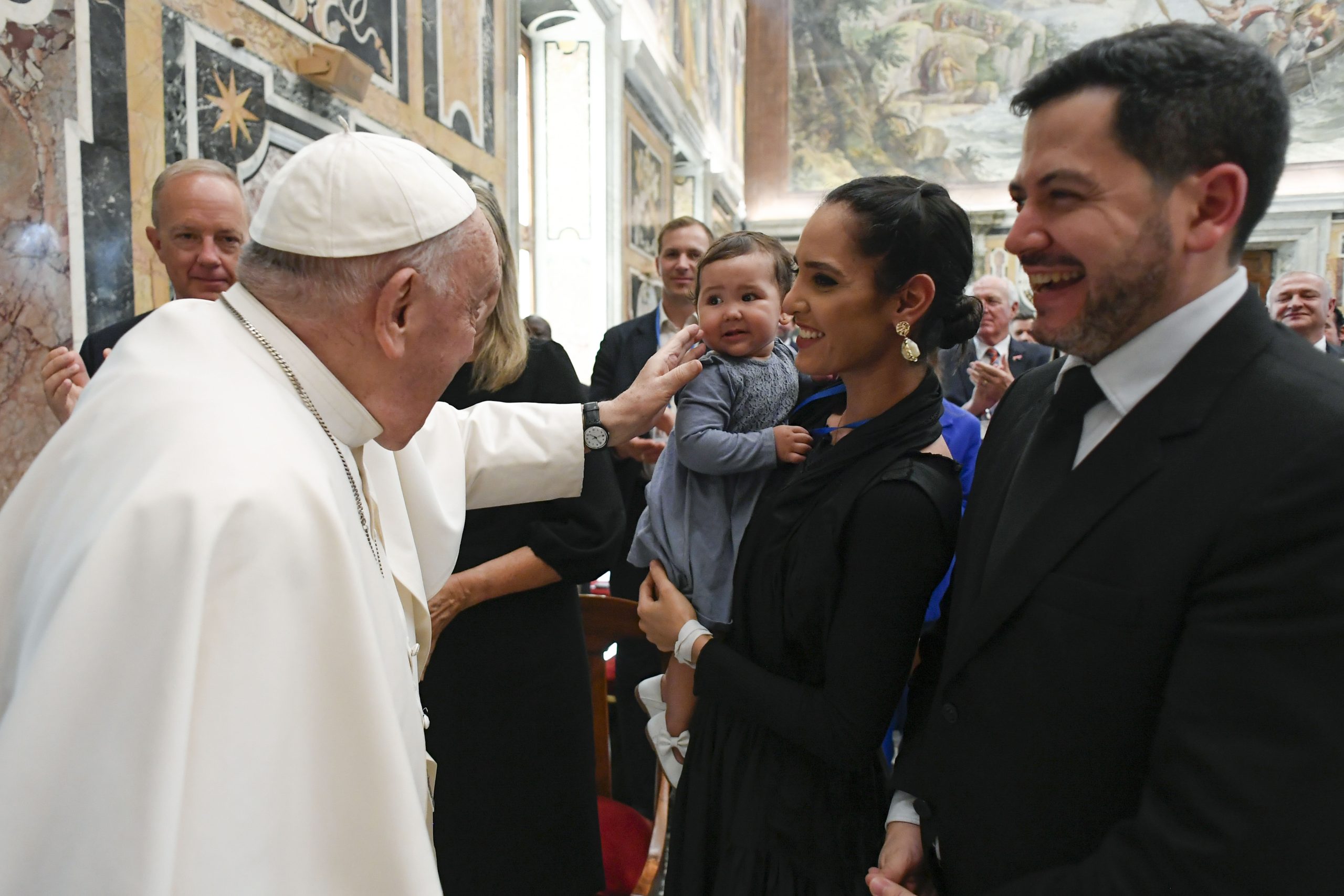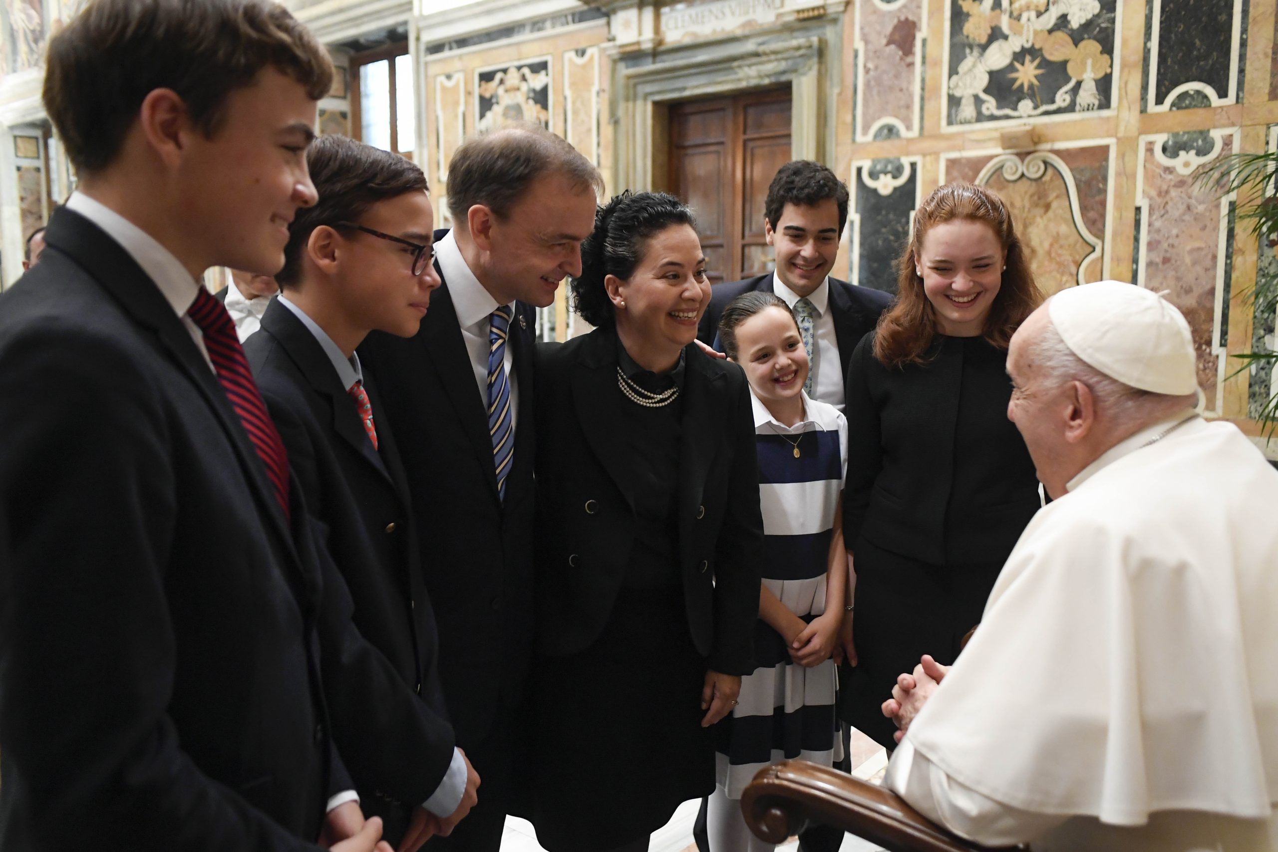 Infine, rivolto ai presenti: “La guerra non è speranza, la guerra non dà speranza. Possa il vostro impegno per il bene comune, sostenuto dalla fede nelle promesse di Cristo, servire da esempio per i nostri giovani. Quanto è importante per loro vedere modelli di speranza e ideali che contrastino i messaggi di pessimismo e cinismo – non dimentichiamo i messaggi cinici, sono terribili! – a cui i giovani sono così spesso esposti! Insomma, per noi che viviamo in un mondo in guerra, con permanenti crisi e conflitti, si tratta di trovare sapienza e forza per vedere oltre le nubi, di leggere i segni dei tempi e, con la speranza generata dalla fede, ispirare altri, specialmente i giovani, a lavorare per un domani migliore”.