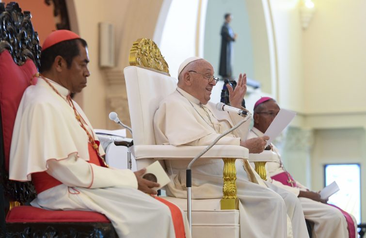 “La Chiesa esiste per evangelizzare, e noi siamo chiamati a portare agli altri il dolce profumo della vita nuova del Vangelo”. Lo ha ribadito il Papa, incontrando il clero nella cattedrale di Dili. “L’evangelizzazione avviene quando abbiamo il coraggio di rompere il vaso che contiene il profumo, rompere il guscio che spesso ci chiude in noi stessi e uscire da una religiosità pigra, comoda, vissuta soltanto per un bisogno personale”, ha spiegato Francesco, auspicando “una Chiesa in movimento, una Chiesa che non sta ferma, non ruota attorno a sé stessa, ma è bruciata dalla passione di portare a tutti la gioia del Vangelo”. “Anche il vostro Paese, radicato in una lunga storia cristiana, ha bisogno oggi di un rinnovato slancio nell’evangelizzazione, perché a tutti arrivi il profumo del Vangelo”, la tesi del Papa: “un profumo di riconciliazione e di pace dopo gli anni sofferti della guerra; un profumo di compassione, che aiuti i poveri a rialzarsi e susciti l’impegno per risollevare le sorti economiche e sociali del Paese; un profumo di giustizia contro la corruzione”.
