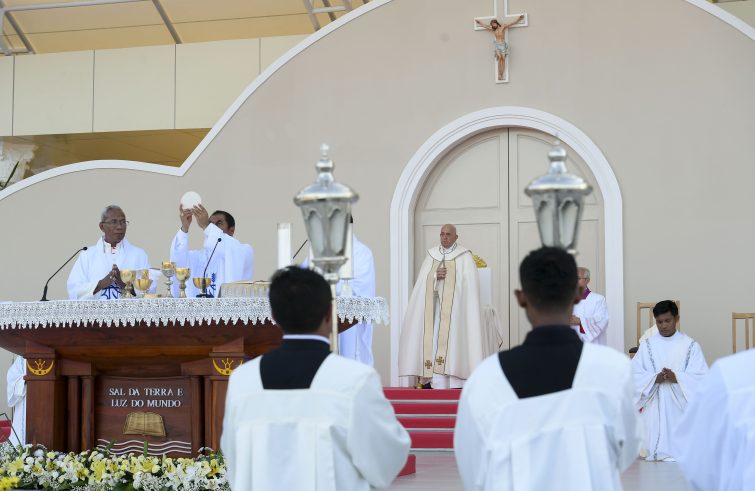 “Non abbiamo paura di farci piccoli davanti a Dio, e gli uni di fronte agli altri, di perdere la nostra vita, di donare il nostro tempo, di rivedere i nostri programmi”. Lo ha chiesto il Papa ai fedeli di Timor Est, il paese più cattolico dell’Asia, radunato oggi nella spianata di Taci Tolu per la messa presieduta dal Papa nella sua seconda giornata di permanenza nel paese. “Non abbiamo paura di ridimensionare quando necessario anche i nostri progetti, non per sminuirli, ma per renderli ancora più belli attraverso il dono di noi stessi e l’accoglienza degli altri”, l’invito di Francesco. Poi il riferimento a “due bellissimi monili tradizionali di questa terra: il Kaibauk e il Belak”, tutti e due di metallo prezioso, simbolo rispettivamente della “forza e tenerezza di Pare e di Madre”. “Così il Signore manifesta la sua regalità, fatta di carità e di misericordia”, ha commentato il Papa: “E allora chiediamo insieme, in questa Eucaristia, ciascuno di noi, come uomini e donne, come Chiesa e come società, di saper riflettere nel mondo la luce forte e tenera del Dio dell’amore”.