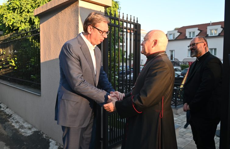 Mons. Nemet accoglie il presidente Vucic (Foto Diocesi di Belgrado)