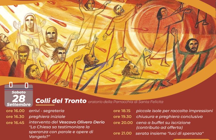 La prima giornata dell’assemblea domani, sabato 28 settembre, avrà inizio presso la parrocchia di Santa Felicita, in Colli del Tronto, alle ore 16, con l’accoglienza e la registrazione dei partecipanti, seguita da un momento di preghiera iniziale alle 16,30. Subito dopo, il vescovo di Pinerolo, mons. Derio Olivero, terrà un intervento dal titolo “La Chiesa sa testimoniare la speranza con parole e opere di Vangelo?”, riflettendo sul ruolo profetico della Chiesa nel mondo contemporaneo.