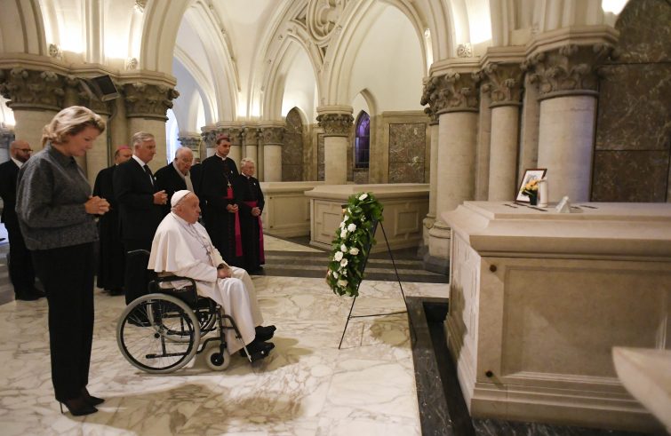 Dopo l’incontro nella basilica di Koekelberg, Papa Francesco si è recato nella cripta reale, sottostante la Chiesa di Nostra Signora di Laeken, dove sono raccolte le tombe di molti membri della Casa Reale del Belgio. Lo comunica ai giornalisti la Sala Stampa della Santa Sede. Accolto dal Re e dalla Regina, il Papa si è fermato davanti alla tomba di Re Baldovino in silenziosa preghiera. Successivamente, davanti al Re e ai presenti, ne ha elogiato il coraggio, quando scelse di “lasciare il suo posto da Re per non firmare una legge omicida”. Infine il Papa ha esortato i belgi a guardare a lui in questo momento in cui si fanno strada leggi criminali, auspicando che proceda la sua causa di beatificazione.