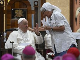 Essere vicini alle “periferie di questo Paese”, come hanno fatto i missionari che “non si sono arresi: questa è la vita missionaria, partire e ripartire”. Lo ha raccomandato il Papa, nel suo secondo discorso in Papua Nuova Guinea, pronunciato nel santuario di Maria Ausiliatrice a Port Moresby e rivolto a vescovi della Papua Nuova Guinea e delle Isole Salomone, sacerdoti, diaconi, consacrati e consacrate, seminaristi e catechisti. “Vorrei raccomandarvi una via importante verso cui dirigere le vostre partenze: quella delle periferie di questo Paese”, l’invito di Francesco, in risposta alle testimonianze ascoltate poco prima: “Penso alle persone appartenenti alle fasce più disagiate delle popolazioni urbane, come anche a quelle che vivono nelle zone più remote e abbandonate, dove a volte manca il necessario. E ancora a quelle emarginate e ferite, sia moralmente che fisicamente, dal pregiudizio e dalla superstizione, a volte fino a rischio della vita. A questi fratelli e sorelle la Chiesa desidera essere particolarmente vicina, perché in loro Gesù è presente in modo speciale”. Tre i temi del discorso papale: “Il coraggio di cominciare, la bellezza di esserci e la speranza di crescere”. “E per favore, non dimenticatevi: vicinanza”, l’invito a braccio: “Vicinanza, compassione, tenerezza”.