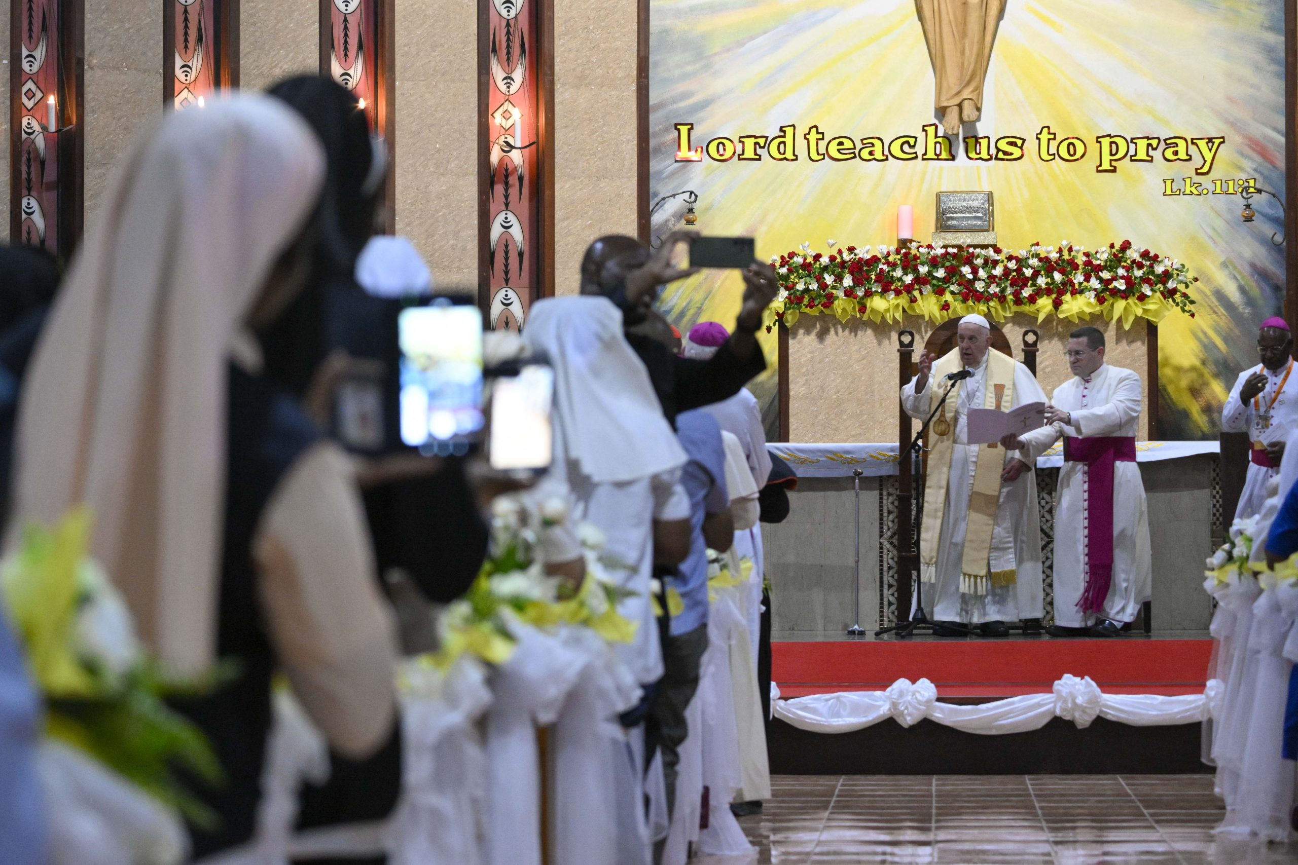 Essere vicini alle “periferie di questo Paese”, come hanno fatto i missionari che “non si sono arresi: questa è la vita missionaria, partire e ripartire”. Lo ha raccomandato il Papa, nel suo secondo discorso in Papua Nuova Guinea, pronunciato nel santuario di Maria Ausiliatrice a Port Moresby e rivolto a vescovi della Papua Nuova Guinea e delle Isole Salomone, sacerdoti, diaconi, consacrati e consacrate, seminaristi e catechisti. “Vorrei raccomandarvi una via importante verso cui dirigere le vostre partenze: quella delle periferie di questo Paese”, l’invito di Francesco, in risposta alle testimonianze ascoltate poco prima: “Penso alle persone appartenenti alle fasce più disagiate delle popolazioni urbane, come anche a quelle che vivono nelle zone più remote e abbandonate, dove a volte manca il necessario. E ancora a quelle emarginate e ferite, sia moralmente che fisicamente, dal pregiudizio e dalla superstizione, a volte fino a rischio della vita. A questi fratelli e sorelle la Chiesa desidera essere particolarmente vicina, perché in loro Gesù è presente in modo speciale”. Tre i temi del discorso papale: “Il coraggio di cominciare, la bellezza di esserci e la speranza di crescere”. “E per favore, non dimenticatevi: vicinanza”, l’invito a braccio: “Vicinanza, compassione, tenerezza”.