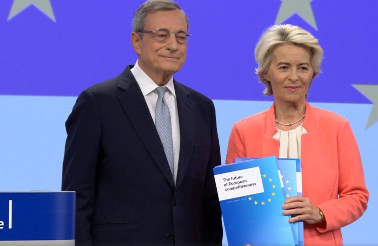 Rispondendo alle domande dei giornalisti presenti nella sala stampa di Bruxelles, a un certo punto Mario Draghi afferma che l’Europa potrebbe essere destinata “a una lenta agonia”. Nel senso che occorrono, a suo avviso, decise riforme, politiche comuni e passi avanti in vari ambiti: investimenti, innovazione, decarbonizzazione, equità sociale. Cita le modeste risorse delle famiglie rispetto a quelle statunitensi; si sofferma nuovamente sul calo demografico (“nel 2040 avremo 20 milioni di lavoratori in meno”). “Saremo, eventualmente, una società che si riduce. Forse, in questo senso, non percepiamo la gravità della situazione”. In precedenza l’autore del rapporto sulla competitività aveva affermato: “I valori fondamentali dell’Europa sono prosperità, equità, libertà, pace e democrazia in un ambiente sostenibile. L’Unione europea esiste per garantire che gli europei possano sempre beneficiare di questi diritti fondamentali. Se l’Europa non sarà più in grado di fornirli ai cittadini”, o se dovrà barattarne uno con altro, “avrà perso la sua ragion d’essere”. Quindi la ricetta ribadita più volte: “L’unico modo per affrontare questa sfida è crescere e diventare più produttivi, preservando i nostri valori di equità e inclusione sociale”. Per questo occorre che “l’Europa cambi radicalmente”.