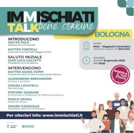All’evento, che avrà luogo giovedì 16 gennaio, alle ore 19, presso lo spazio Mug Magazzini generativi, in via Emilia Levante 9/F, a Bologna, parteciperanno il card. Matteo Maria Zuppi, arcivescovo metropolita di Bologna e presidente della Cei, che, dialogando con Gigi De Palo, ideatore di “Immischiati”, parlerà del tema dal punto di vista ecclesiale e di come i cattolici siano chiamati a fare la propria parte; Alessandro Bergonzoni, comico e scrittore, che declinerà il bene comune con i suoi brillanti giochi di parole; Paolo Cevoli, attore e comico, che, con le leggerezza, racconterà storie e aneddoti che evidenziano l’importanza del rispetto reciproco e del senso di comunità; Chiara Locatelli, medico del reparto di Neonatologia e terapia intensiva neonatale del Sant’Orsola di Bologna, che, dal suo punto di vista, approfondirà il connubio tra etica del lavoro e personale; Chiara Pazzaglia, presidente delle Acli di Bologna, che darà la sua testimonianza di donna cattolica impegnata nel sociale; Stefano Zamagni, economista e professore emerito dell’Università di Bologna che spiegherà il bene comune da una prospettiva economica attraverso il concetto di “giustizia benevolente”.