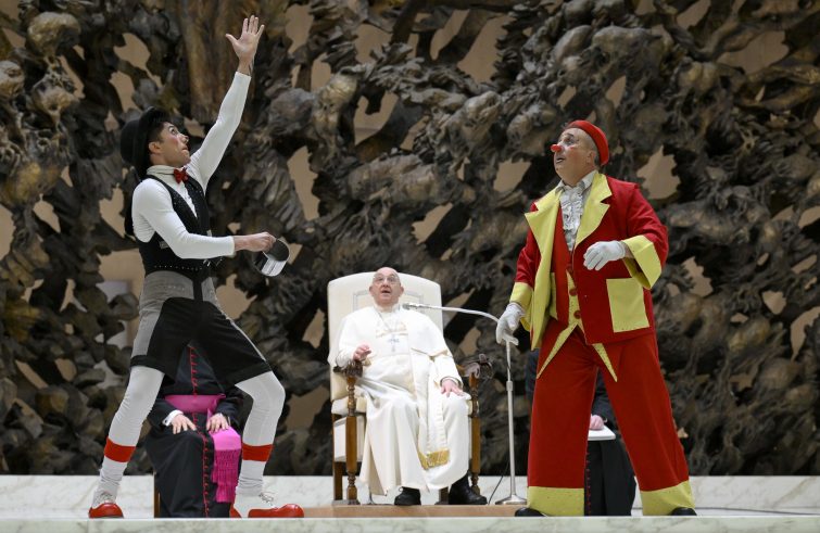 Al termine dell’udienza di oggi in Aula Paolo VI, durante i saluti ai fedeli di lingua italiana, il Papa ha assistito, divertito, a un’esibizione del Circo Roni Roller, come aveva fatto mercoledì scorso con gli artisti di CircAfrica. In primo piano, oggi, i numeri dei clown, che hanno fatto mimare al Santo Padre il gesto di lanciare una palla invisibile. Poi i numeri di trampolieri, giocolieri e acrobati, tra cui una piccolissima ballerina che si è esibita in una spaccata. Anche i fedeli presenti in Aula Paolo VI hanno applaudito a più riprese, mostrando di gradire lo spettacolo a sorpresa sopra i gradini del palco, con la partecipazione di un cane che ha ripreso, da protagonista, una palla da tennis lanciata dal Santo Padre. Alla fine, alcuni bimbi sono saliti fino alla postazione papale e Francesco, distribuendo loro caramelle, ha commentato a braccio: “Loro sono i padroni”. Durante i saluti ai fedeli di lingua italiana e prima della foto corale sul palco, il Papa ha ringraziato i circensi: “Il lavoro del circo è un lavoro umano, un lavoro d’arte, un lavoro di tanto sforzo. Quando torneranno, gli diamo un bell’applauso!”.